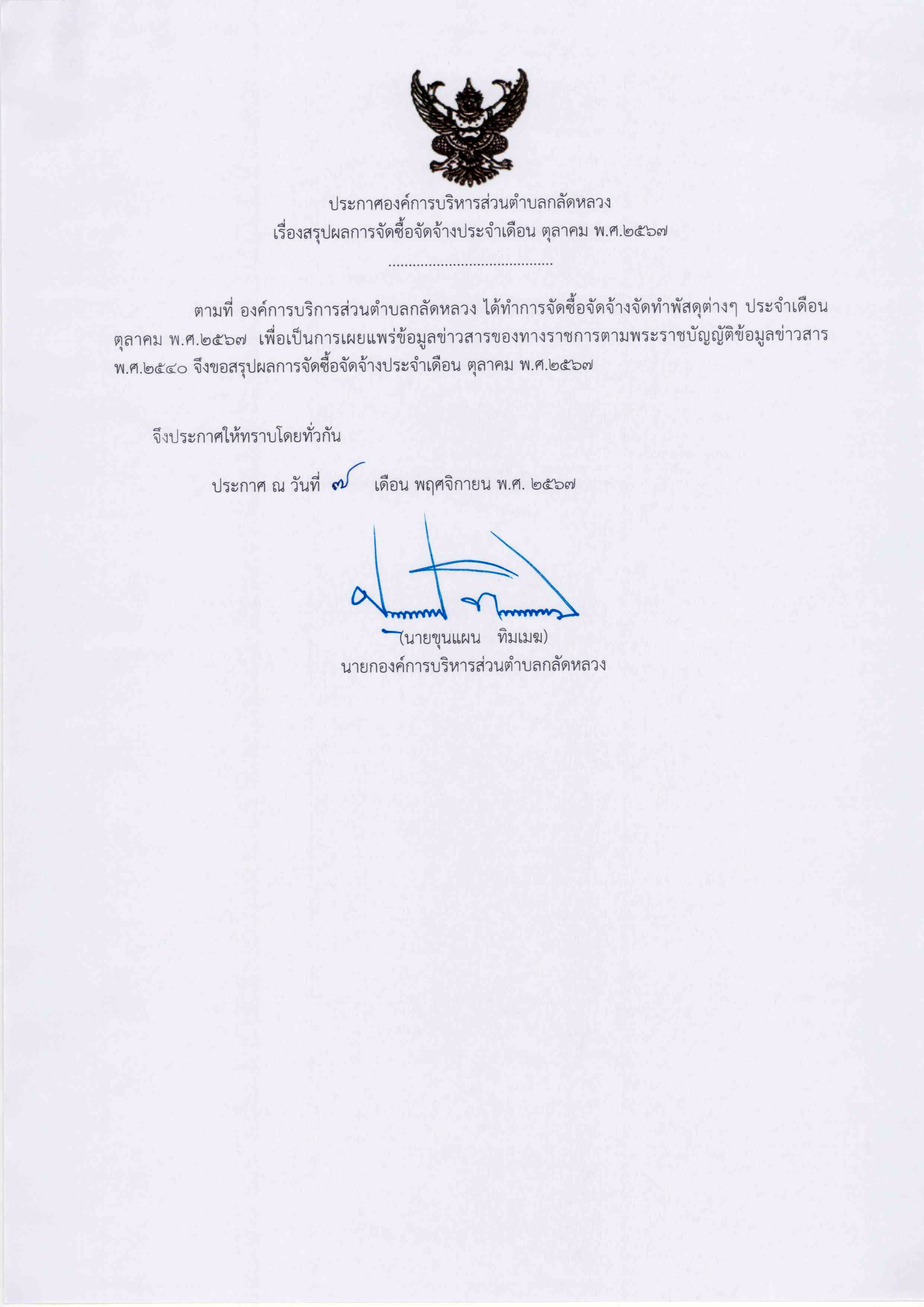 ประกาศ สรุปการจัดซื้อจัดจ้างประจำเดือน ตุลาคม 2567